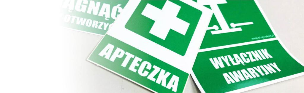 Kolejnym niezbędnym elementem, jaki uwzględniliśmy w naszej ofercie, są tablice BHP. Stosuje się je do oznakowania stanowisk pracy. Szczególnie tych, które w sposób szczególny zagrażających zdrowiu i życiu zatrudnionych osób. Znaki ostrzegawcze BHP (znaki chemiczne, znaki elektryczne) z tej kategorii przestrzegają m.in. przed wysokim napięciem, gorącymi powierzchniami, ostrymi elementami, niskimi temperaturami czy też strefami z ruchem obrotowym. Znaki zakazu BHP to produkty, które pomagają zachować bezpieczeństwo w miejscu pracy. Mogą one ostrzegać m.in. przed tym, by nie dotykać niebezpiecznych przedmiotów. Mogą również zakazywać wchodzenia na dany obszar. Z kolei znaki nakazu BHP służą do informowania o niebezpieczeństwie. Zabronionych czynnościach lub też obowiązku korzystania z dodatkowych środków ochronnych.