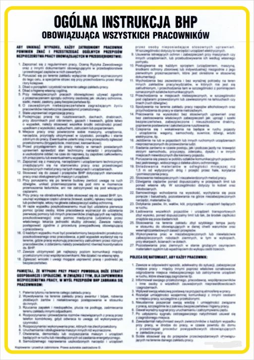 Polskie prawo jasno określa, iż każdy zakład pracy powinien przestrzegać obowiązujących przepisów dotyczących bezpieczeństwa i higieny pracy. Jednym z nich jest stosowanie odpowiednich oznaczeń. Właśnie dlatego nasz sklep BHP zebrał bogatą kolekcję znaków, tablic informacyjnych oraz piktogramów BHP. To prosty i czytelny sposób na przekazywanie informacji dla pracowników. Czytelnie informując o czynnościach, które pomogą im zachować pełnię bezpieczeństwa.