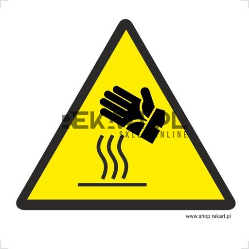GORĄCA POWIERZCHNIA STOSUJ OSŁONĘ RĄK to tablica ostrzegawcza (naklejka lub tabliczka) informująca o konieczności stosowaniu osłon na ręce ze względu na gorącą powierzchnię.