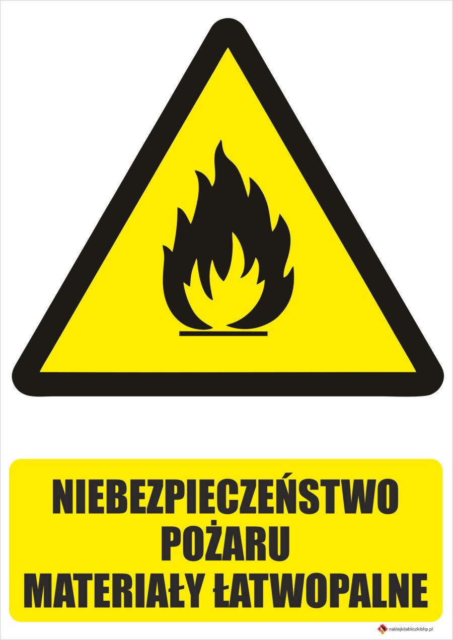 NIEBEZPIECZEŃSTWO POŻARU MATERIAŁY ŁATWOPALNE – Tablica BHP