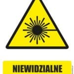 NIEWIDZIALNE PROMIENIOWANIE to tablica ostrzegawcza (naklejka lub tabliczka) informująca o występowaniu niewidzialnego promieniowania.