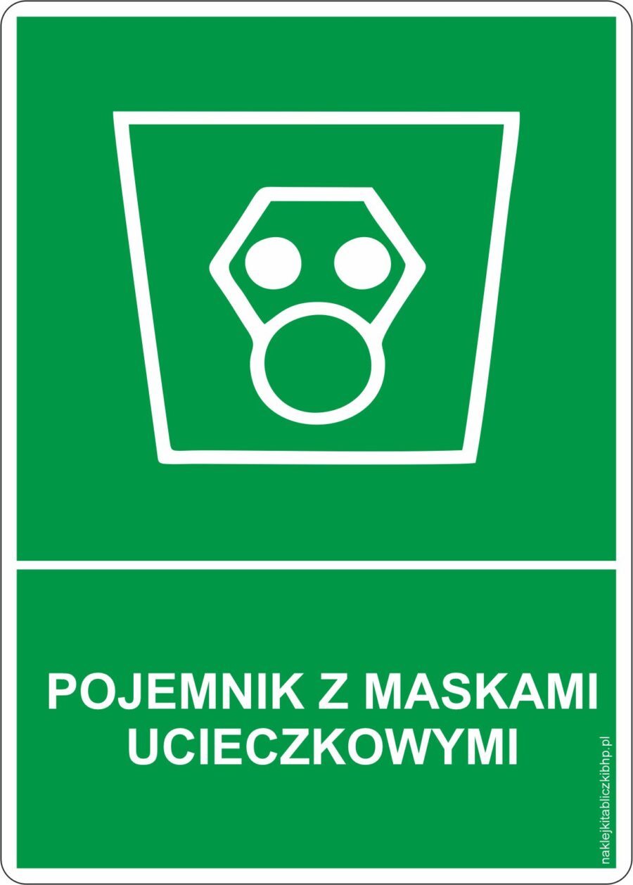 POJEMNIK Z MASKAMI UCIECZKOWYMI – znak BHP