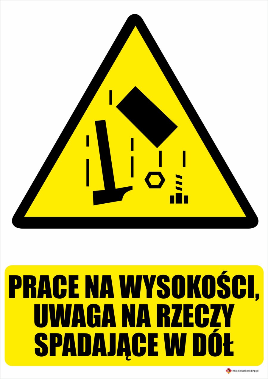 PRACE NA WYSOKOŚCI UWAGA NA RZECZY SPADAJĄCE W DÓŁ – Tablica BHP