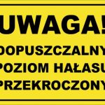 UWAGA DOPUSZCZALNY POZIOM HAŁASU PRZEKROCZONY – tablica informacyjna BHP