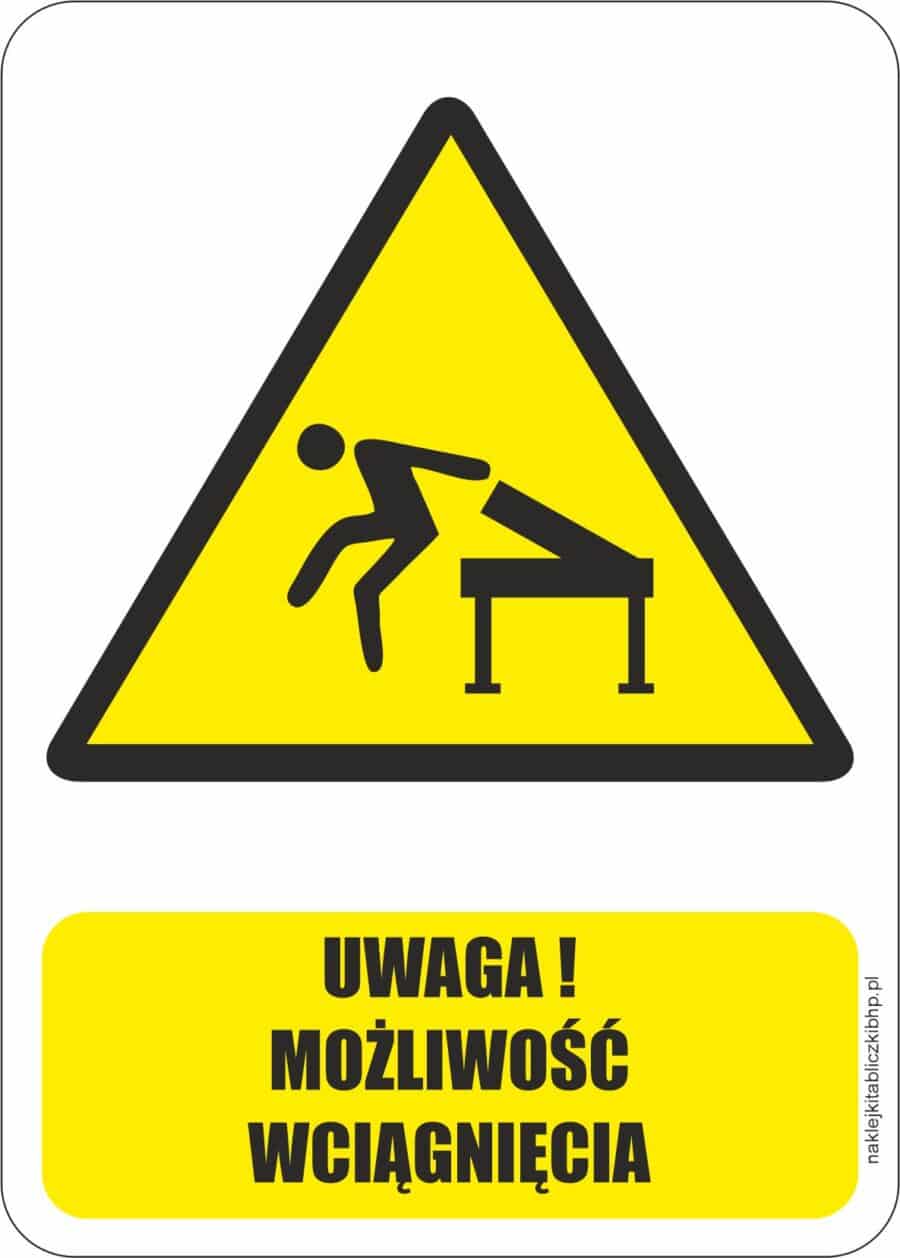 UWAGA MOŻLIWOŚĆ WCIĄGNIĘCIA – znaki ostrzegawcze BHP