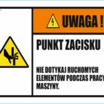 UWAGA PUNKT ZACISKU NIE DOTYKAJ RUCHOMYCH ELEMENTÓW PODCZAS PRACY MASZYNY – znak BHP