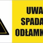 UWAGA SPADAJĄCE ODŁAMKI SKAŁ – ostrzegawczy znak BHP