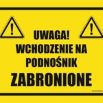 UWAGA WCHODZENIE NA PODNOŚNIK ZBARONIONE – znaki ostrzegawcze BHP