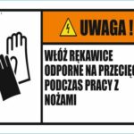 UWAGA WŁÓŻ RĘKAWICE ODPORNE NA PRZECIĘCIA – znak BHP,