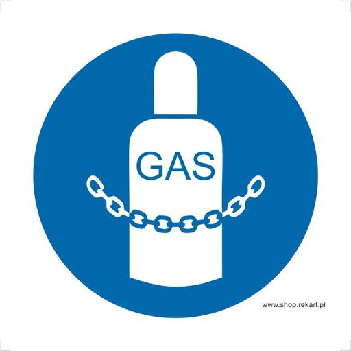 ZABEZPIECZ BUTLĘ to znak nakazu BHP informujący o obowiązku zabezpieczenia butli.