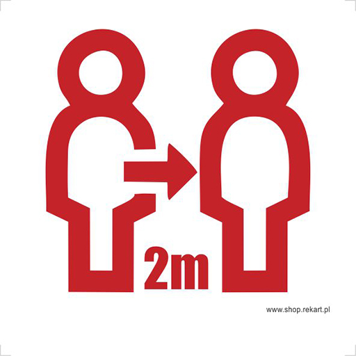 ZACHOWAJ ODSTĘP to znak nakazu BHP informujący o obowiązku zachowania odstępu.