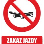 ZAKAZ JAZDY NA DESKOROLCE – znak BHP,